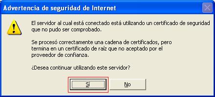 puede presentarle una ventana de "Advertencia de Seguridad",