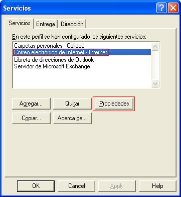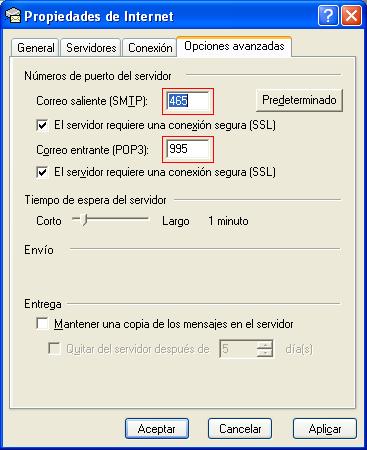 el valor existente en Correo entrante (POP3) y Correo saliente