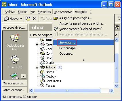 6. Cuando haya ingresado al cliente outlook nuevamente, el servidor
