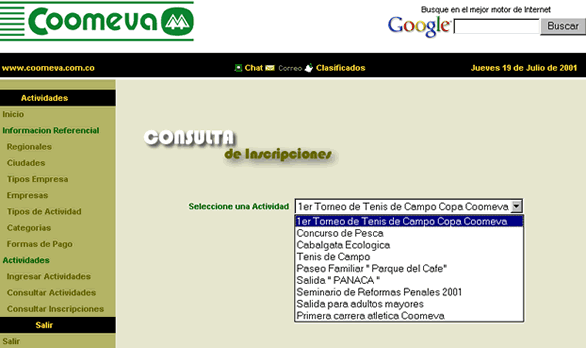 Seleccione la Actividad: El usuario debe seleccionar