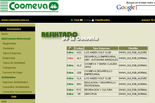 en la fila correspondiente a la empresa o área que desea editar,