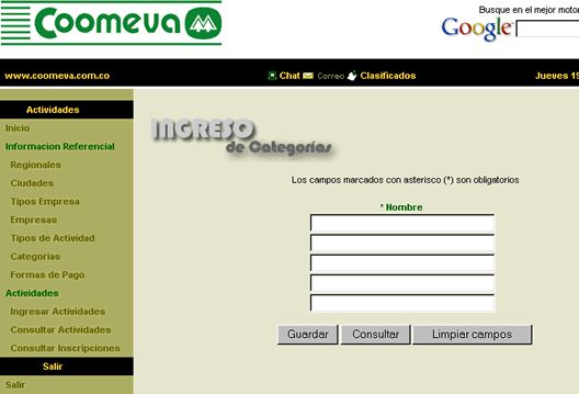 ingreso de una categoría.