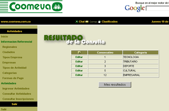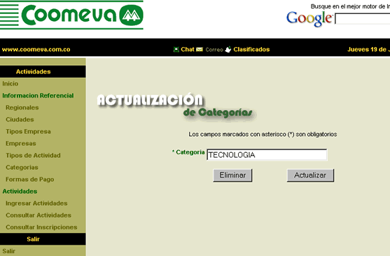 Regionales, ciudades, tipos de empresa, tipos de actividad, categorías