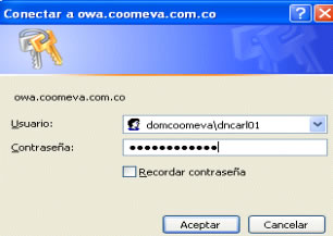 le pedirá su usuario y contraseña de ingreso a la red del dominio