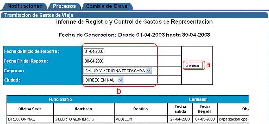 el rango de fechas, la empresa y la ciudad y presione el botón "Generar".