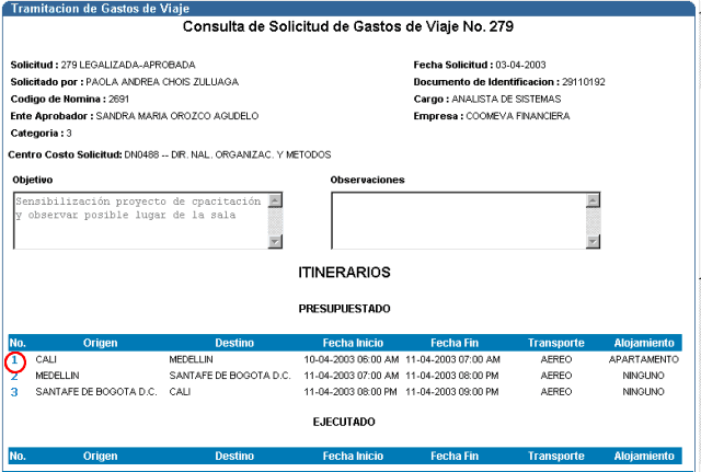 de cuánto dinero aprobaron por el trayecto, se presiona sobre el numeral