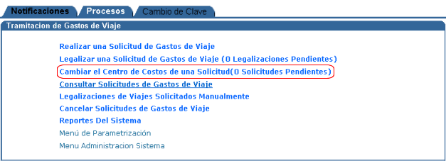 Paso 2 de 3. Para cambiar el Centro de Costos se ingresa
