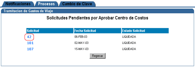 la solicitud no tiene presupuesto para Gastos de Viaje, la solicitud es devuelta
