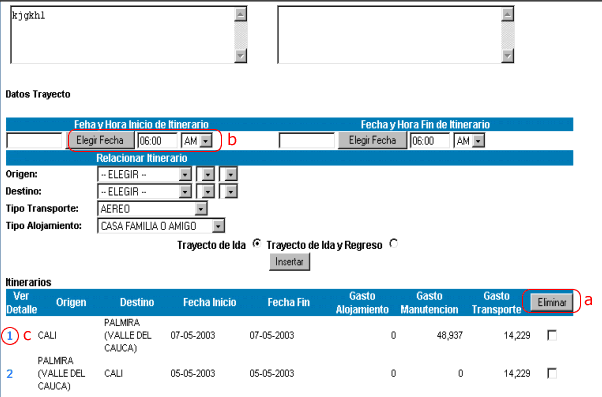origen y destino. Realizar nuevamente el itinerario como se cumplió.