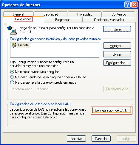 botón "Configuración de LAN".