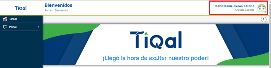 Cuando te logueas con tu usuario y contraseña de red, tu perfil quedará visible en la parte derecha de la pantalla